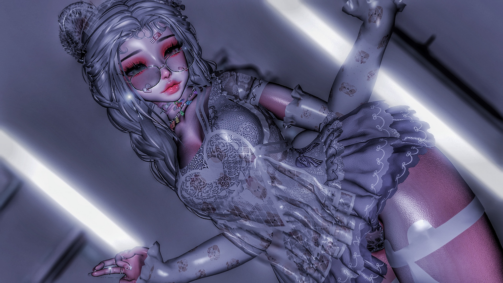 Unity Work (roses,sannaprikos), Head By Rxsi (amelia head), Quest By (Zythoxic), Hair 1, Hair 2, Hair 2 & 3, Hair 4, Hair 5 & 6, Bread, Bear Choker, Gummy Bear Necklace,Maid jacket, apron, thigh highs, lace panties, bear ears, bear tail, sleeves, maid headband, pasties, kitty gloves, arm belt, shoulder bag, star hoops, cat tail, cat ears, fishnet thigh highs, halter top, shoulder coat, Cross Heels, Jean Pants, bra, corset, arm sleeves, skirt, glasses, face bandaids, waist belt