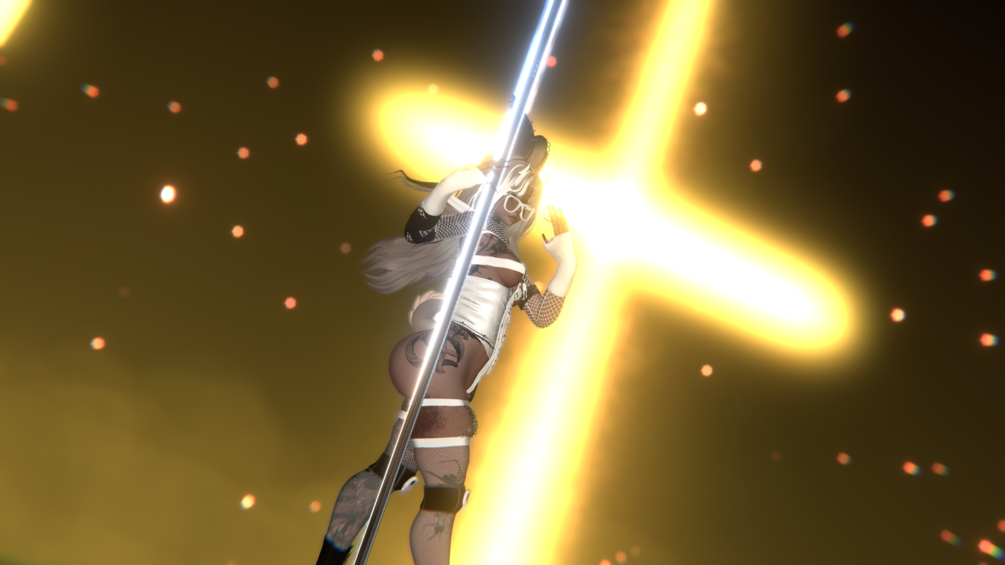 Clothing: Longsleeve Fishnet, Hoodie, TShirt, Cross Top, Star Bikini, Corset, Pasties, Cargo Pants, Skinny Jeans, Shorts, Panties, Belt Cross, Leg Warmers, Fishnet Garter