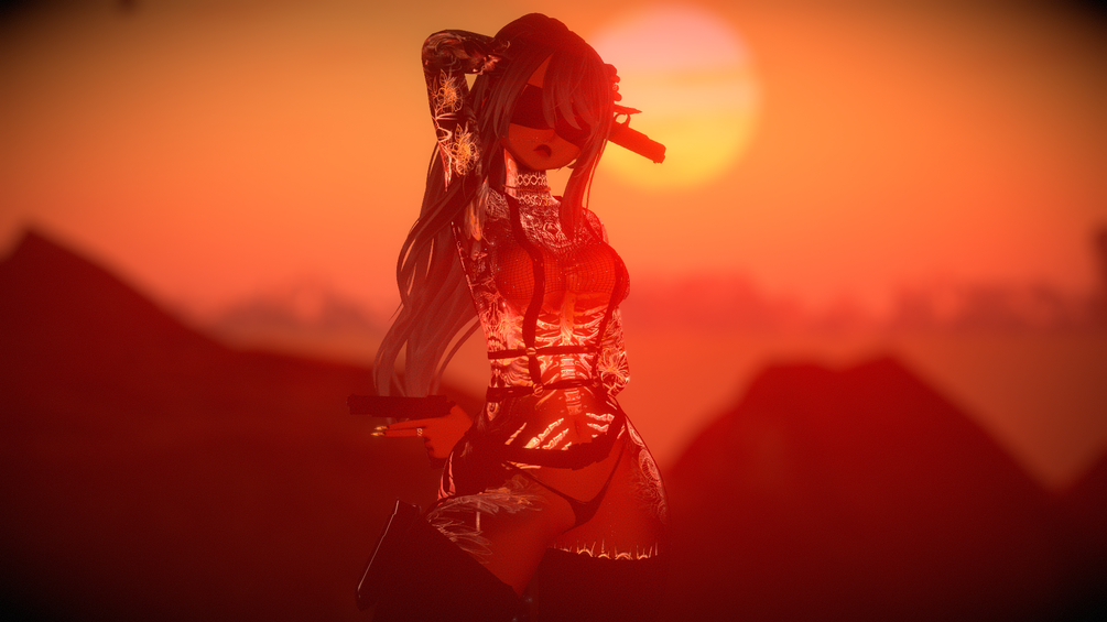 Toggles: Blindfold, Fishnet Top, Chains, Panties, Harness, Tail, Right Hand Gun, Left Hand Gun
